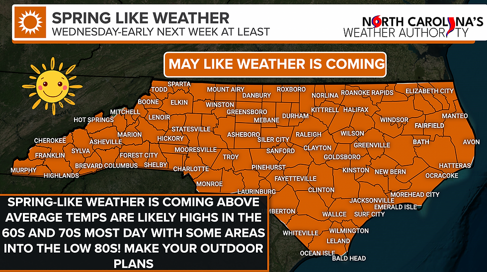 🌧️ Thursday: Let's talk about the forecast for Thursday. A low-pressure system will move in across the state. Models are pretty aggressive with the rain, showing some heavy at times, which is definitely possible, especially for Central and Western NC, but I am taking it more with a grain of salt. The potential is there for some areas to see an inch or more, especially Central and Western NC, with lower amounts further east. I can't rule out an isolated embedded thunderstorm within a heavier...